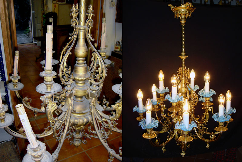 Malgrat que hi ha làmpades de diversos tipus i formes, pel que fa a la seva restauració totes segueixen un procés bàsic: es desmunta la instal·lació elèctrica, se separen els diferents components de totes les seves parts, ja siguin braços de llautó o llàgrimes de cristall.